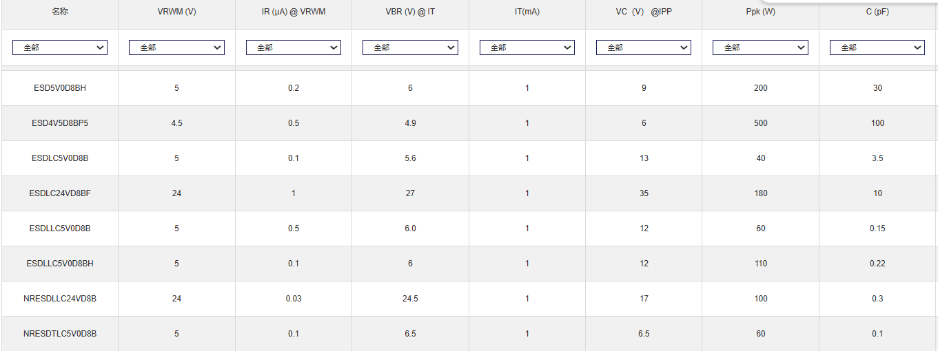 - 关键参数寄生电容(CD)低至0.15pF(测试条件:1MHz, 0V偏压),该值比传统TVS器件低1-2个数量级