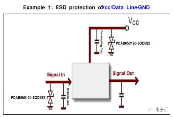 这也是设计中经常用到的一种方法,典型做法就是在关键信号线并联雪崩二极管到地。该法是利用雪崩二极管快速响应并且具有稳定钳位的能力,可以在较短的时间内消耗聚集的高电压进而保护电路板。